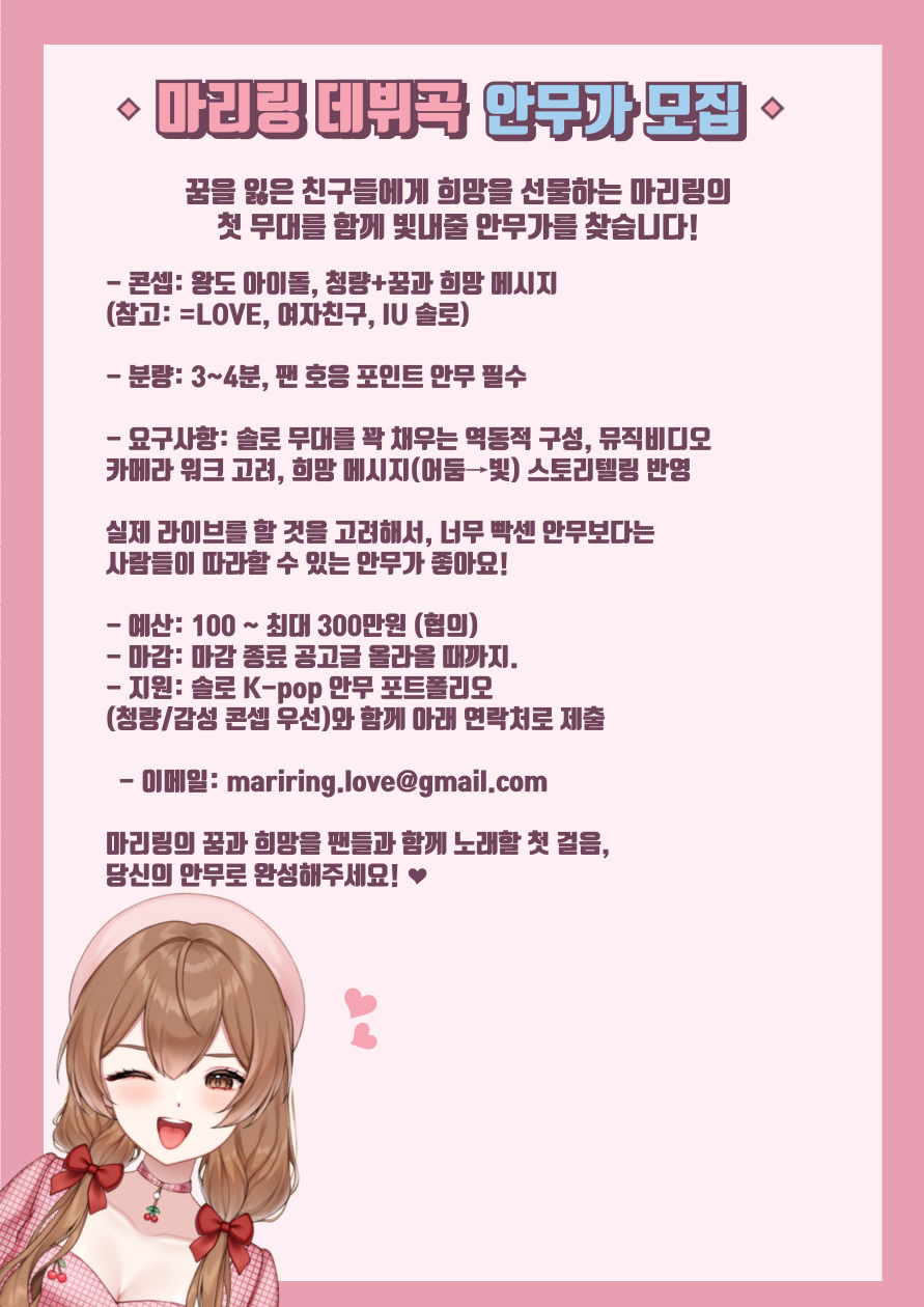 마리링 솔로 데뷔 타이틀곡 안무가를 모집합니다!